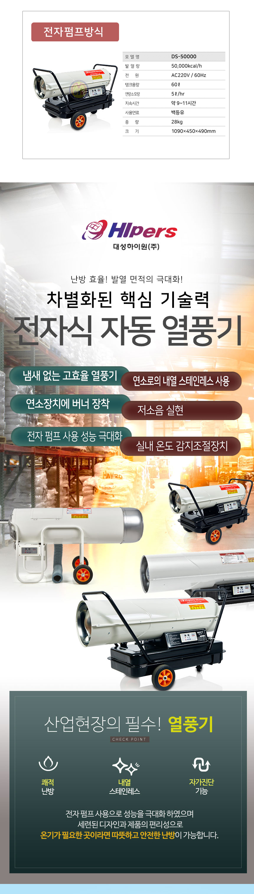 대성하이원 열풍기 DS-50000(전자펌프방식) 대성하이원, 히터, 난로, 열풍기, 난방기구
