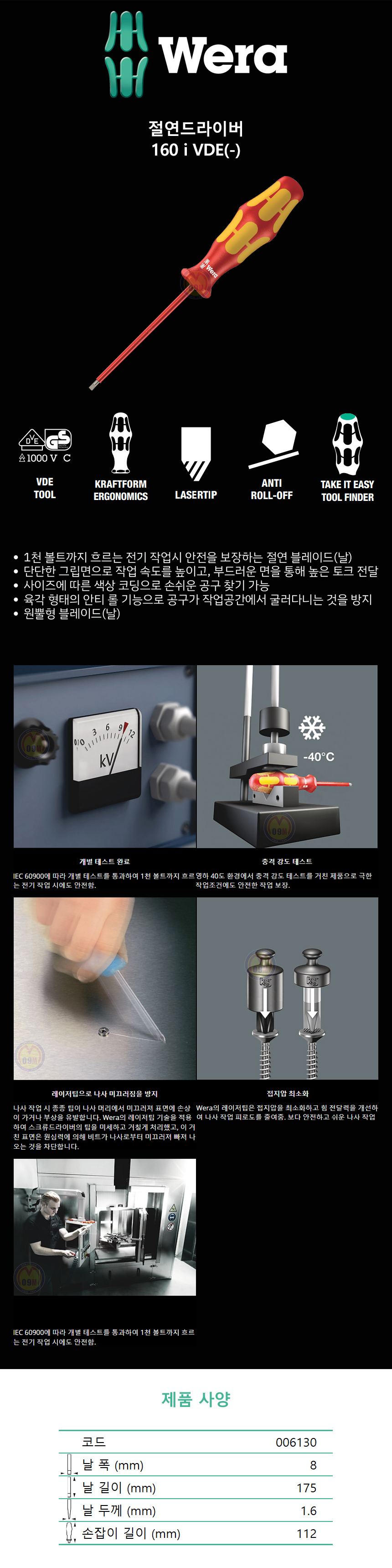 베라 절연드라이버 160 i VDE WERA, (1.2-8.0-175-006130) -드라이버 일자드라이버