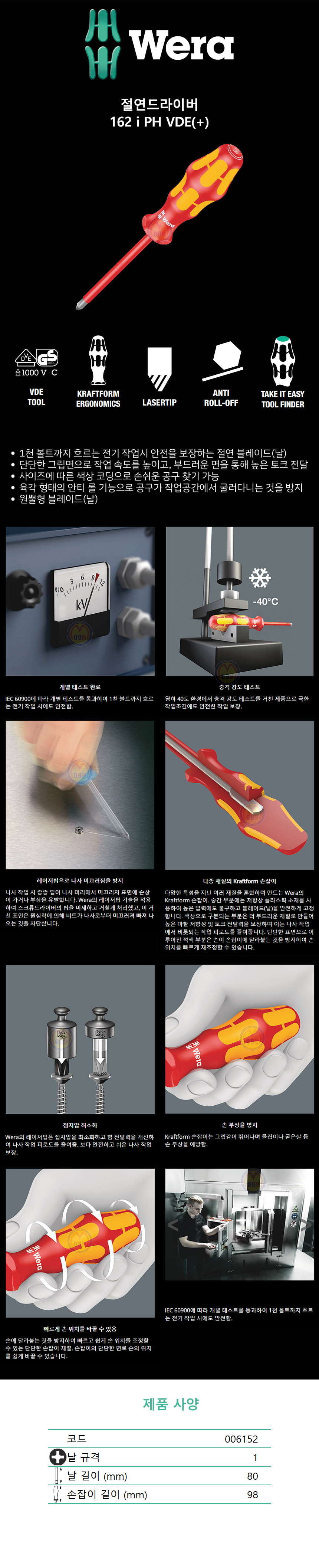 베라 십자 절연드라이버 (PH1-80) 162 i PH VDE WERA, 006152 드라이버