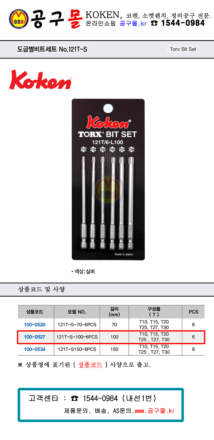 코켄 별비트세트(6PCS) 121T-S-100 KOKEN, 별비트, 별렌치, 별세트,100-0527