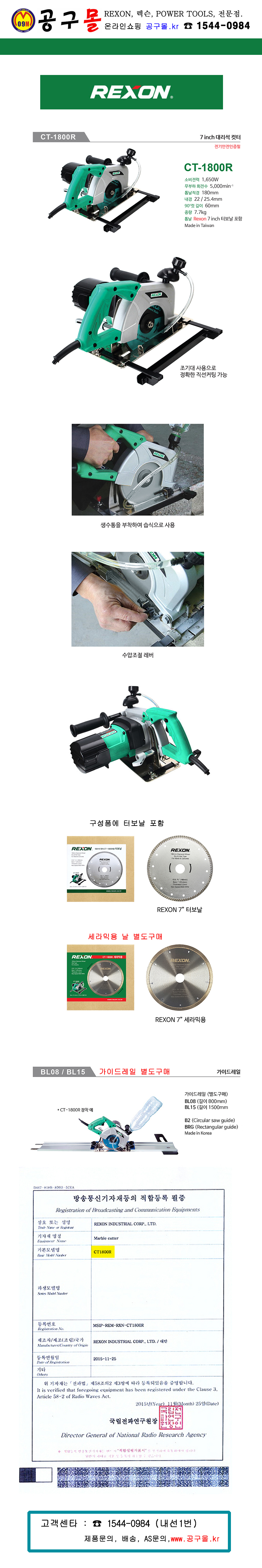 렉슨 대리석컷터(7) CT-1800R (터보날포함) 1650W REXON, CT1800R,513-3118