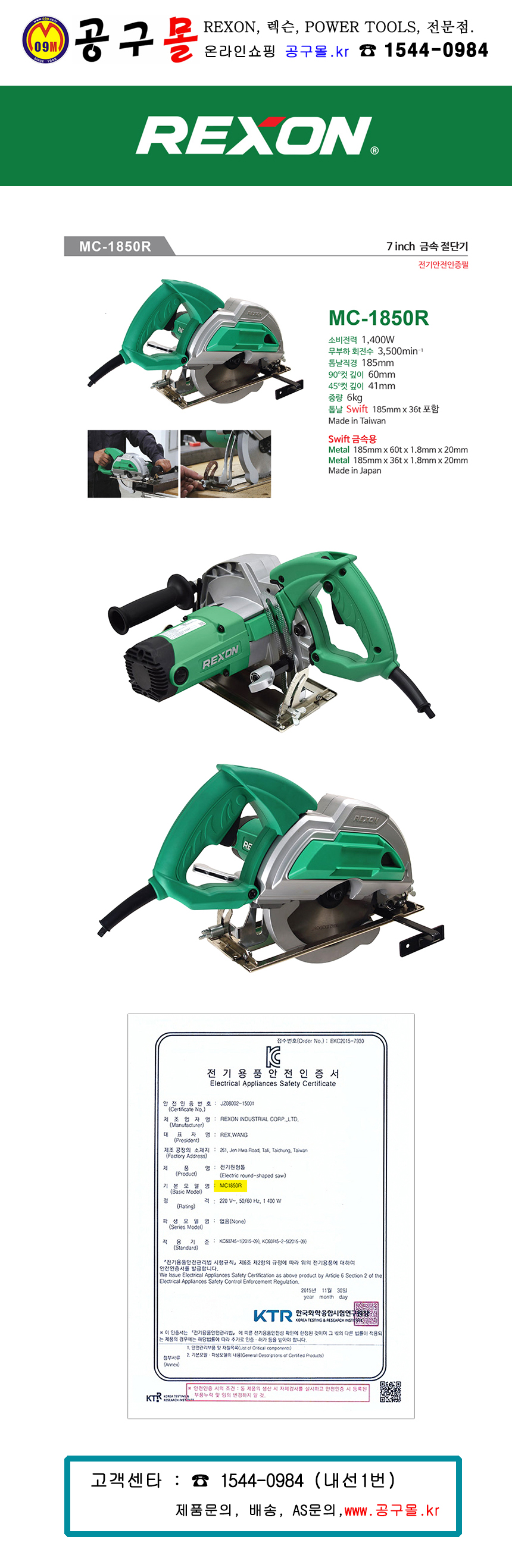 렉슨 금속절단기(7) MC-1850R (톱날포함) 1400W REXON, MC1850R,513-0023