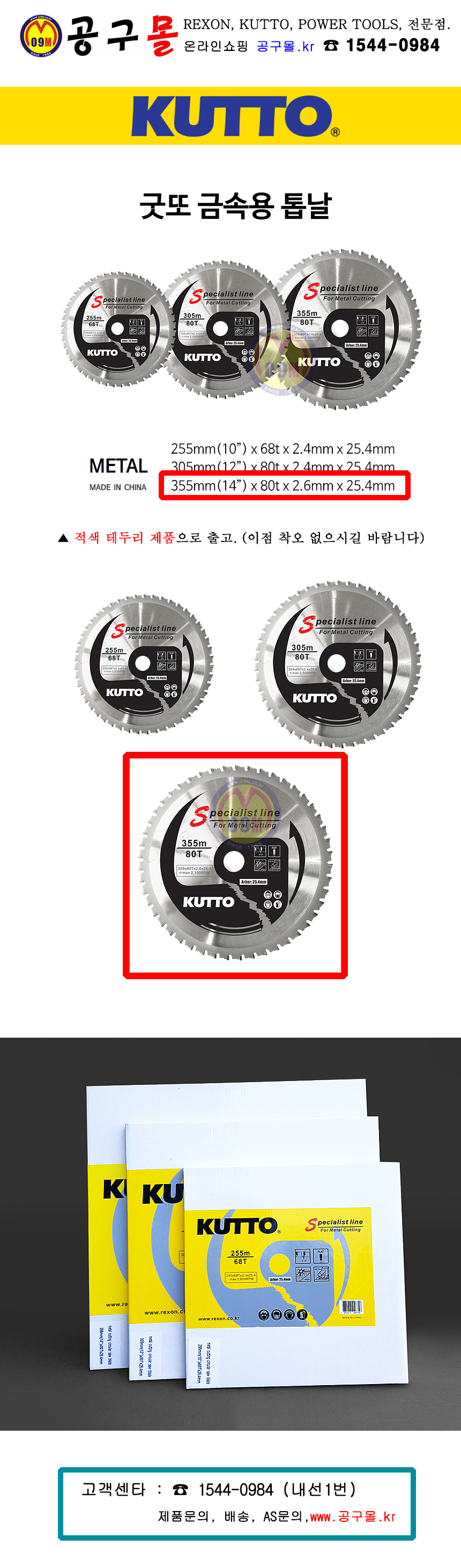 KUTTO 금속용톱날(14) 355mmx 80tx 2.4mmx 25.4mm 굿또, Metal, 스틸톱날, 메탈톱날