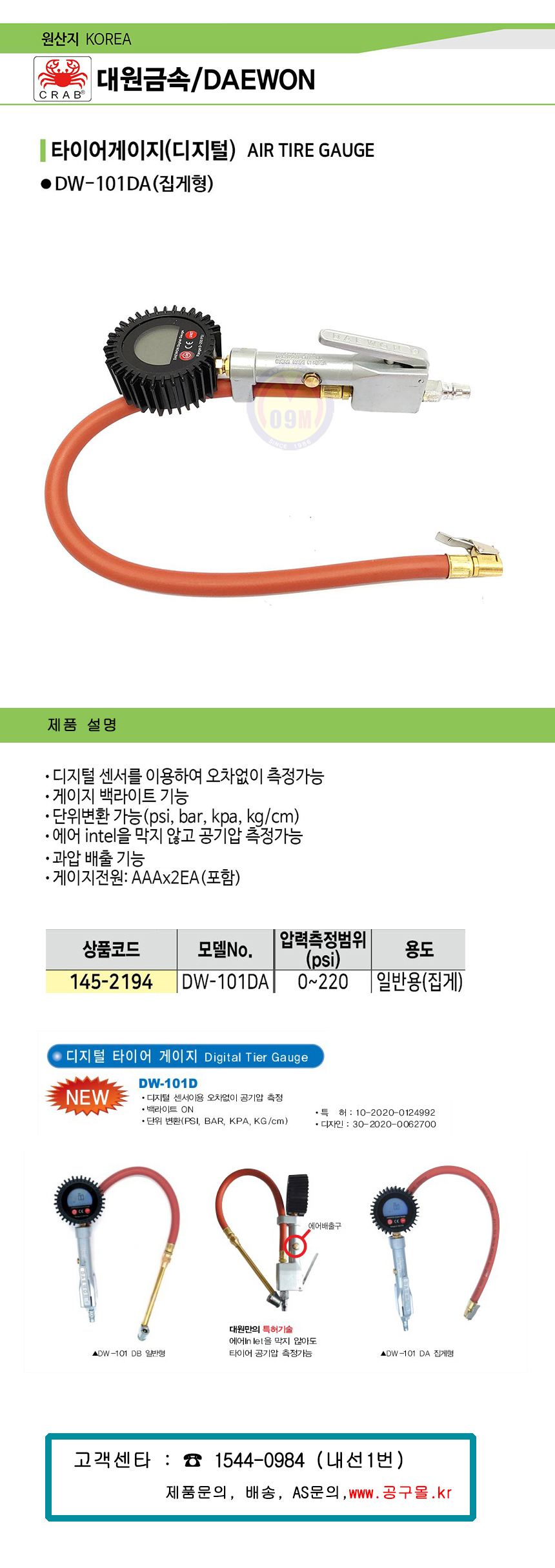 타이어게이지(디지털) DW-101DB(일반형) 대원금속/공구몰/자동차공구/자동차정비공구/타이어공구
