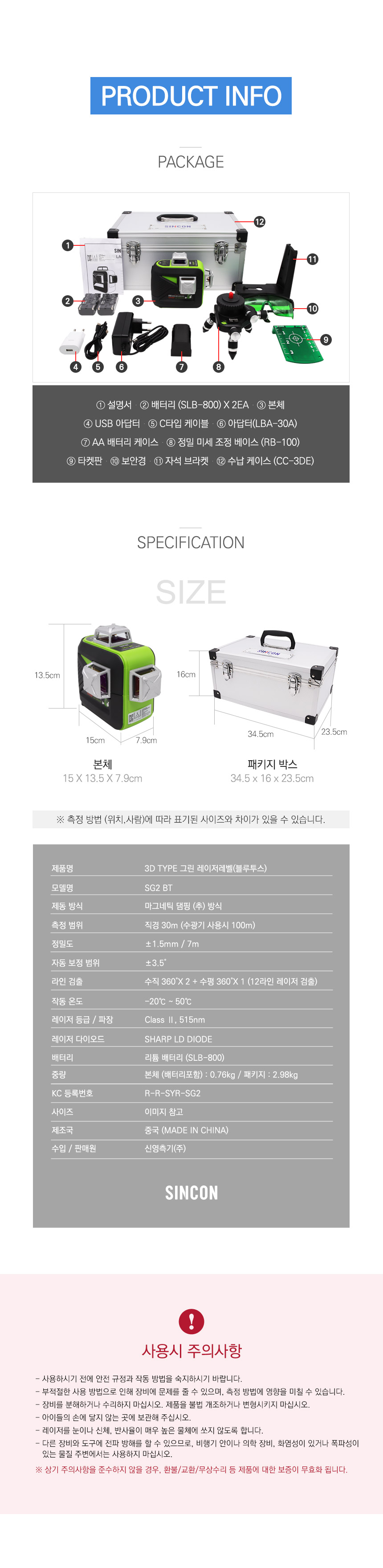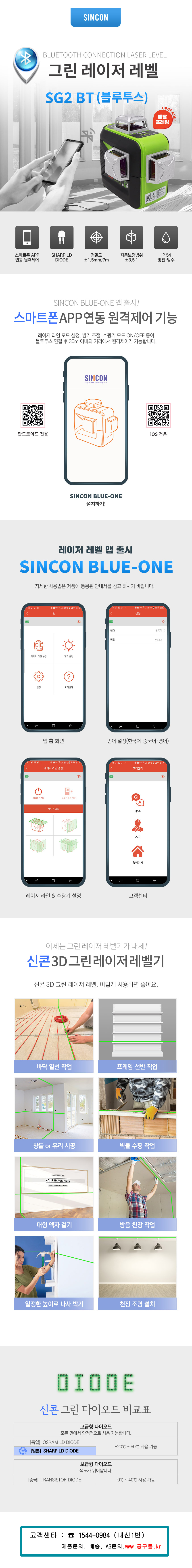 신콘 레이저수평(그린) SG2BT (3D) sincon, APP연동, 레이저레벨기, 신콘레벨기, 공구몰