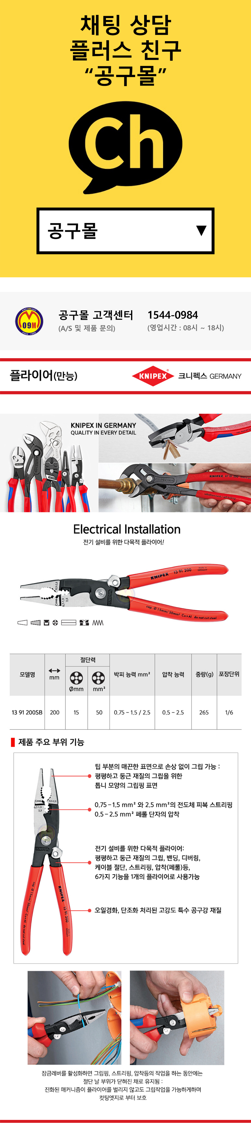 크니펙스 만능 플라이어 13-91-200SB (스프링) 뺀치 니퍼 압착 스트리퍼 케이블커터