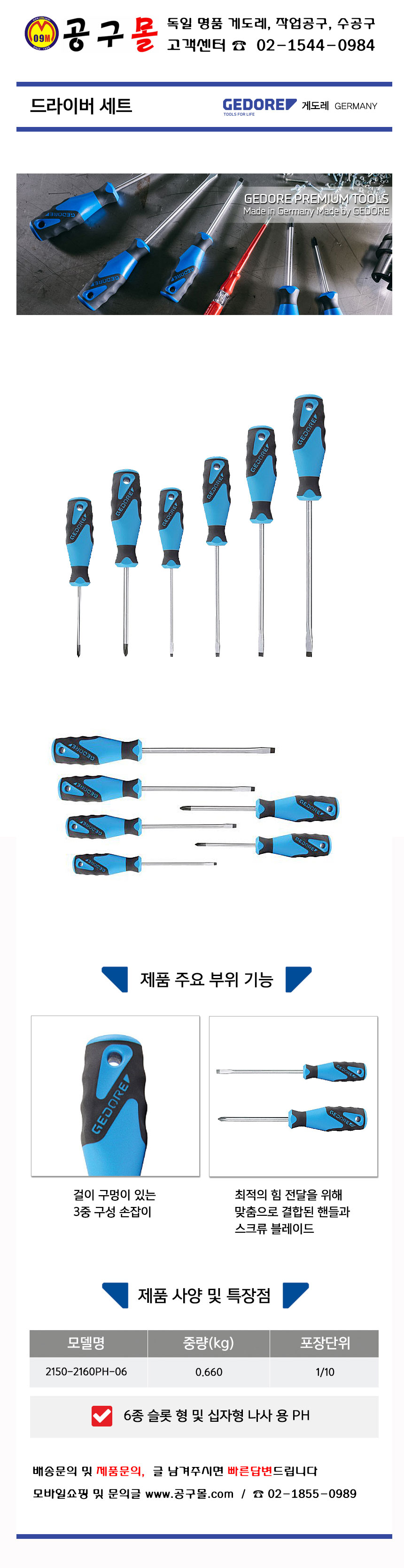 게도레 드라이버세트 2150-2160PH-06, (6종) GEDORE,공구몰,독일공구,101001205058