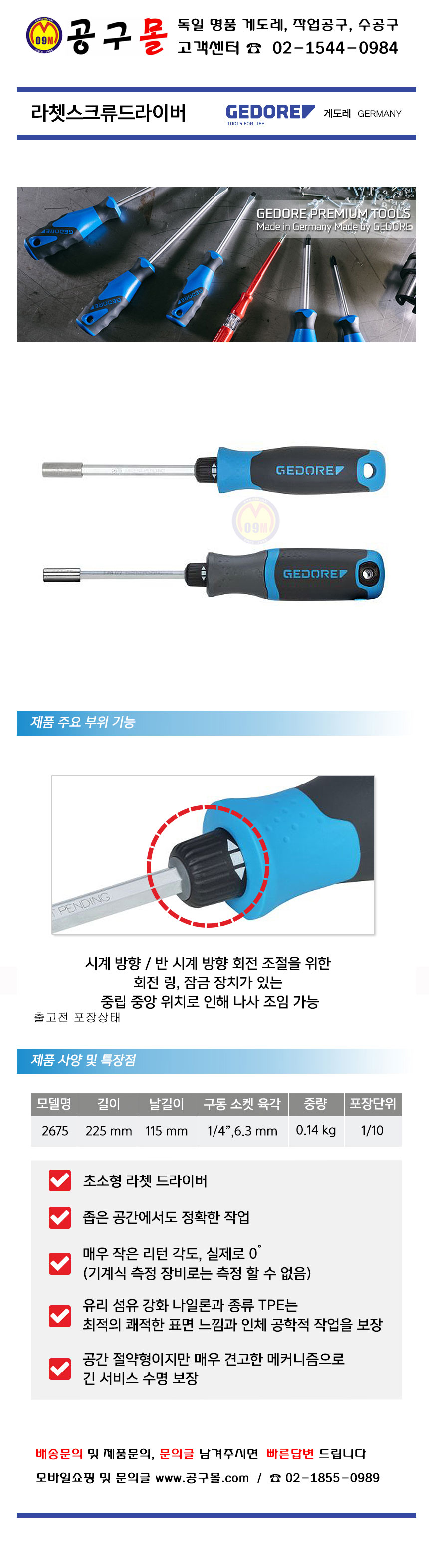 게도레 라쳇스크류 드라이버 2675 (1/4) GEDORE,공구몰,독일공구,101001205075