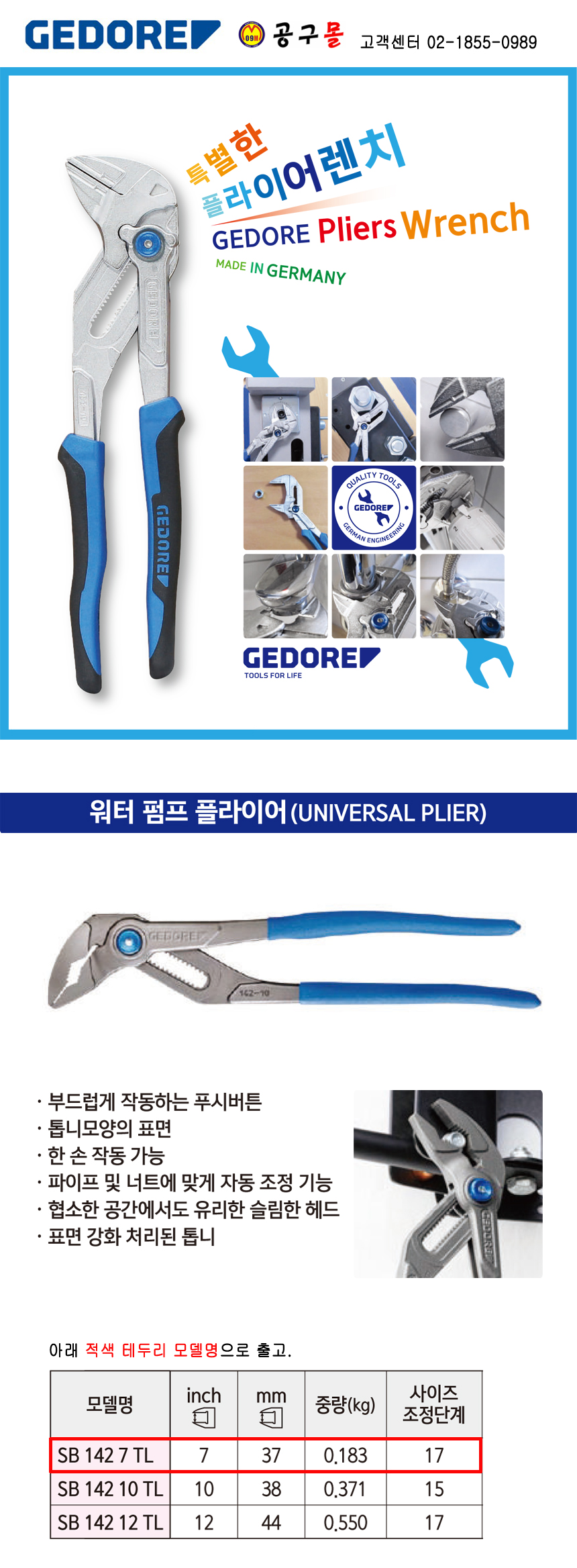 게도레 워터펌프플라이어(철라) SB1427TL GEDORE, 101001029057