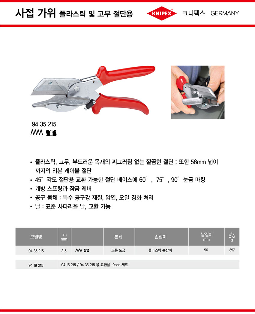 크니펙스 비닐컷터(케이블덕트커트) 95-02-21 KNIPEX,통신케이블커터,공구몰