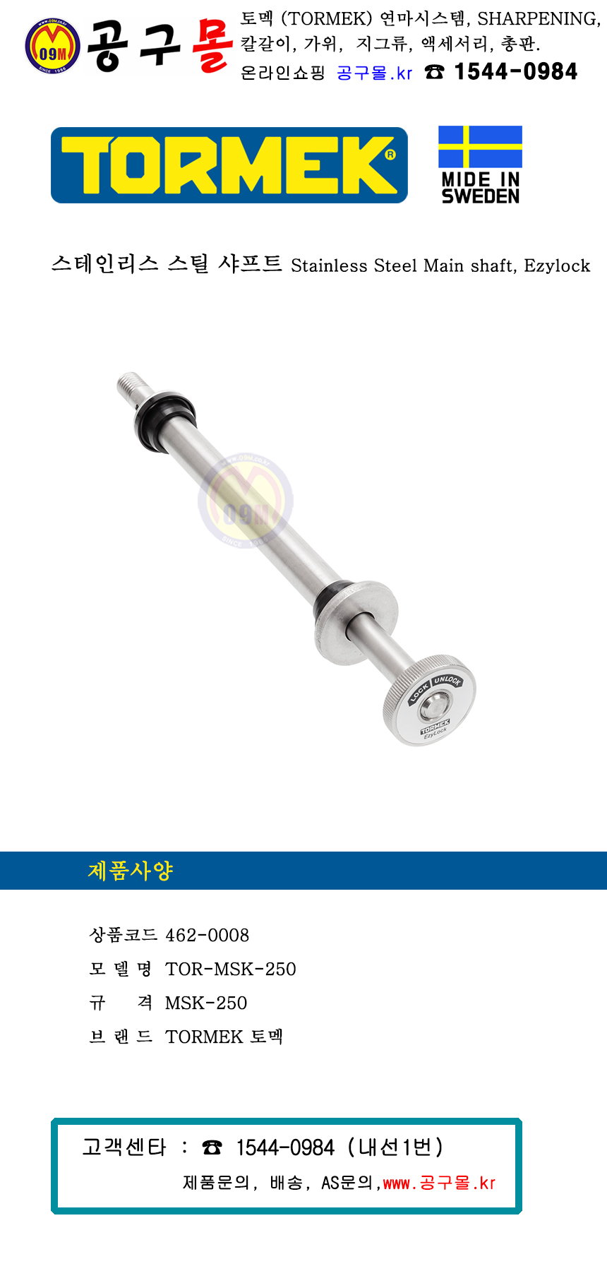 토멕 스테인리스 스틸 샤프트 MSK-250 / TOR-MSK-25, TORMEK, 습식그라인더, 토맥, 나이프연마기계 지그 및 부품, 462-0008
