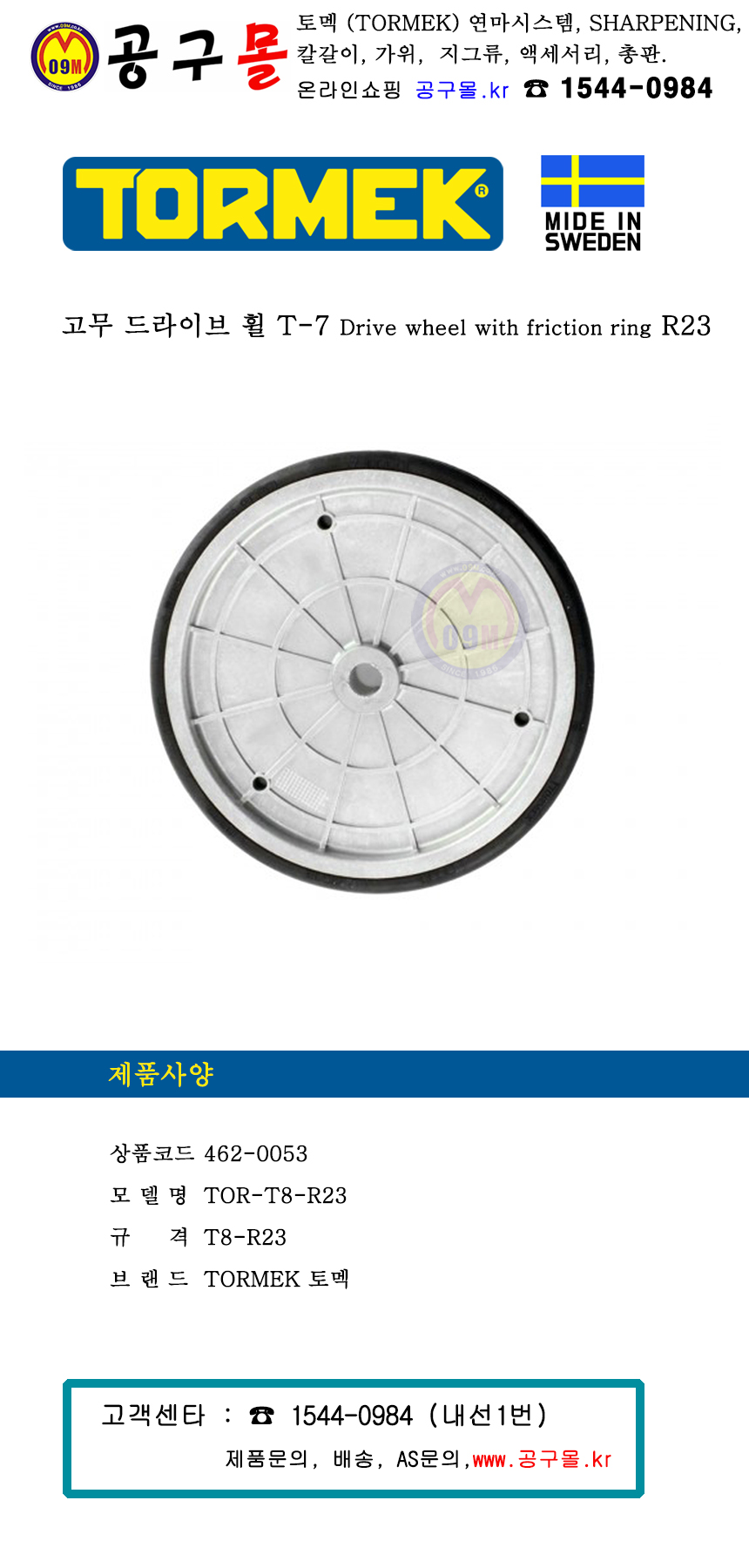 토멕 고무 드라이브 휠 T-7 / T8-R23 / TOR-T8-R23, TORMEK, 습식그라인더, 토맥, 나이프연마기계 부품, 462-0053