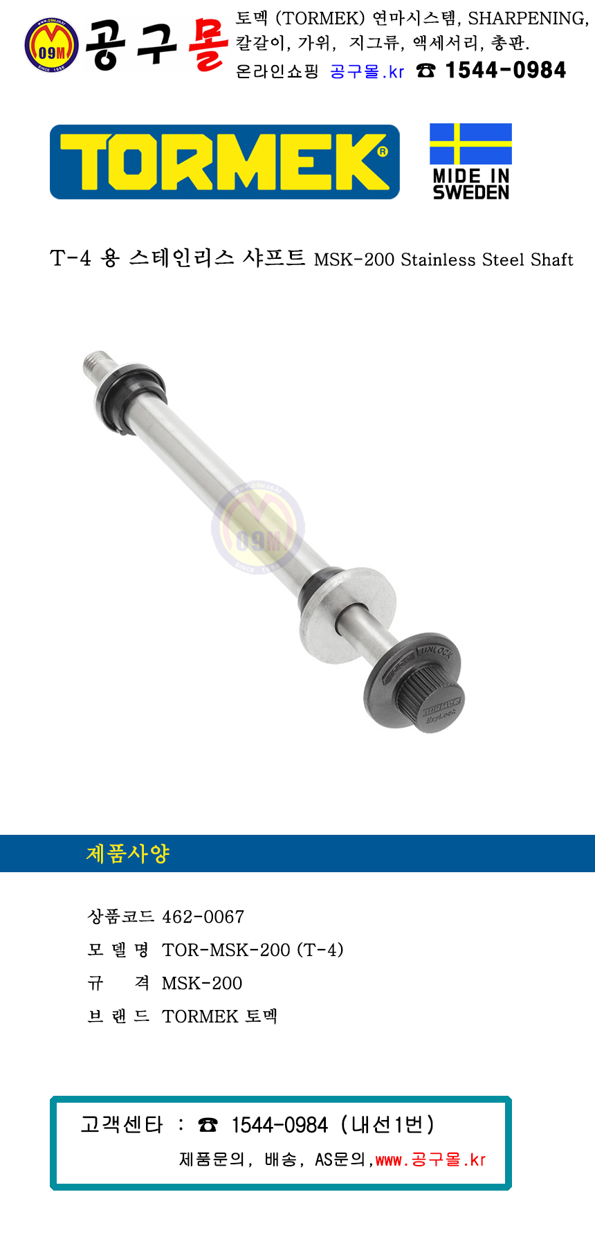 토멕 T-4용 스테인리스 샤프트 MSK-200, TORMEK, 습식그라인더, 토맥, 나이프연마기계 지그 및 부품,462-0067