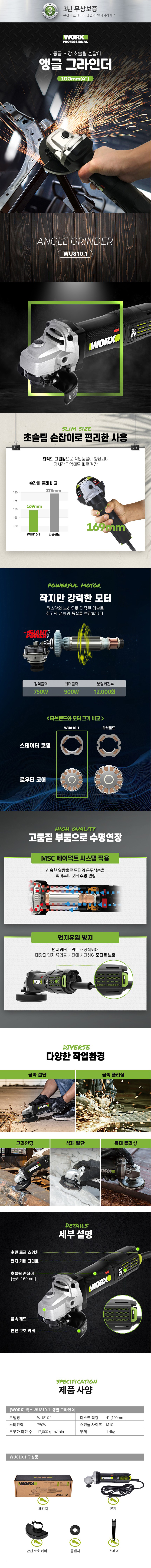WORX 전기그라인더 WU810.1 750W, 앵글그라인더, 웍스프로,WORX PRO
