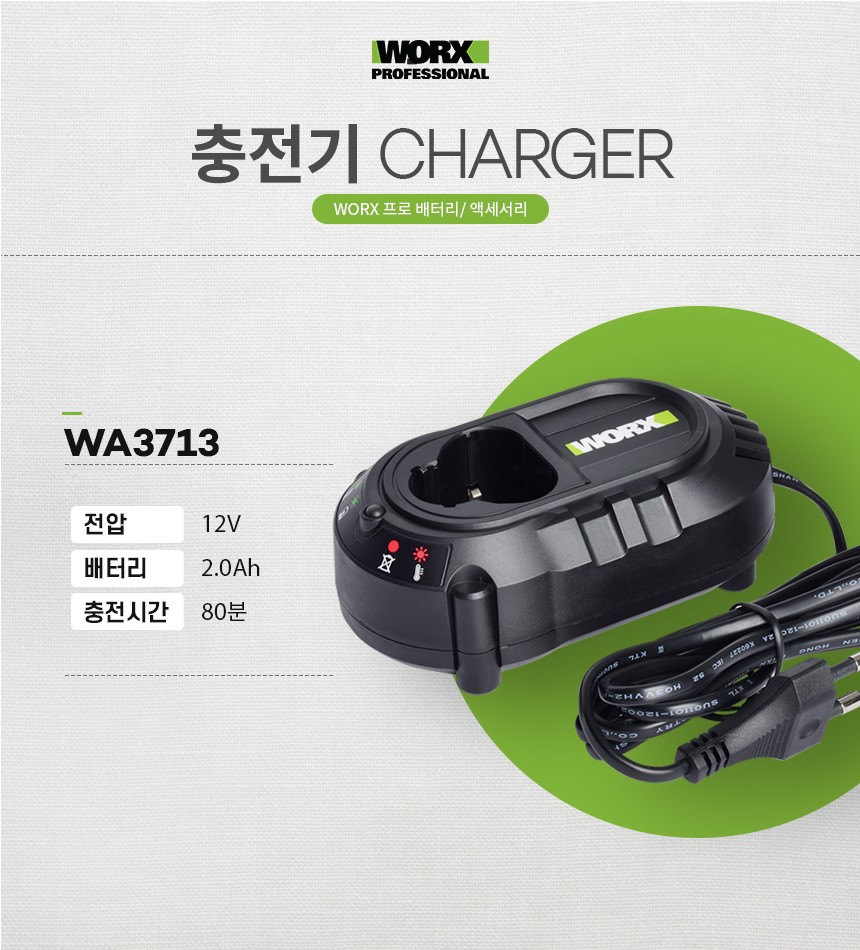 WORX 충전기 WA3713 (12V) 웍스코리아, 웍스프로, WORX PRO