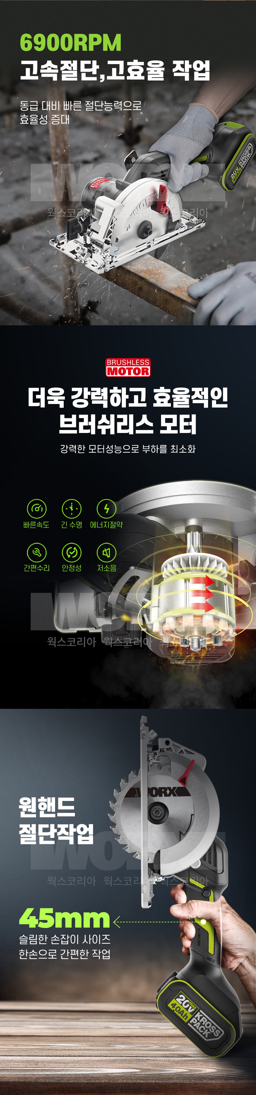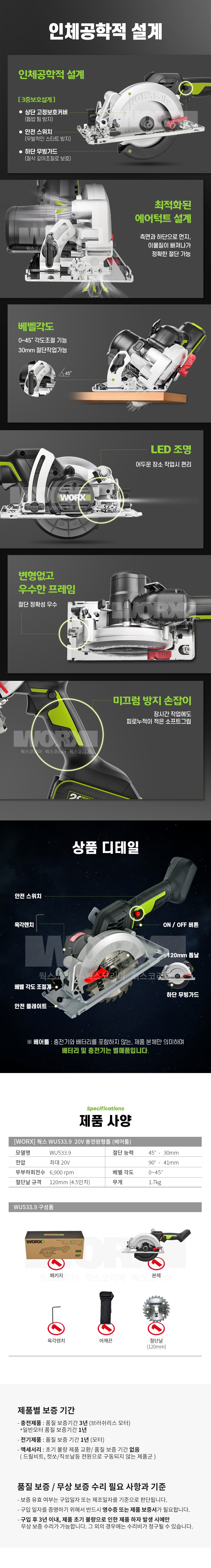 WORX 충전원형톱(베어툴) WU533.9 (20V) 120mm 배터리, 충전기별매, 원형톱, 전기톱, 웍스코리아, WORXKOREA, 웍스프로, WORX PRO