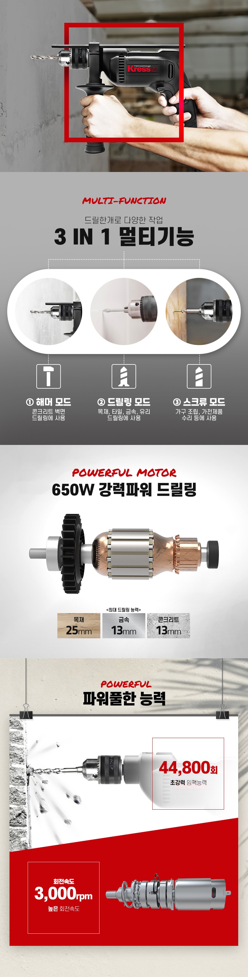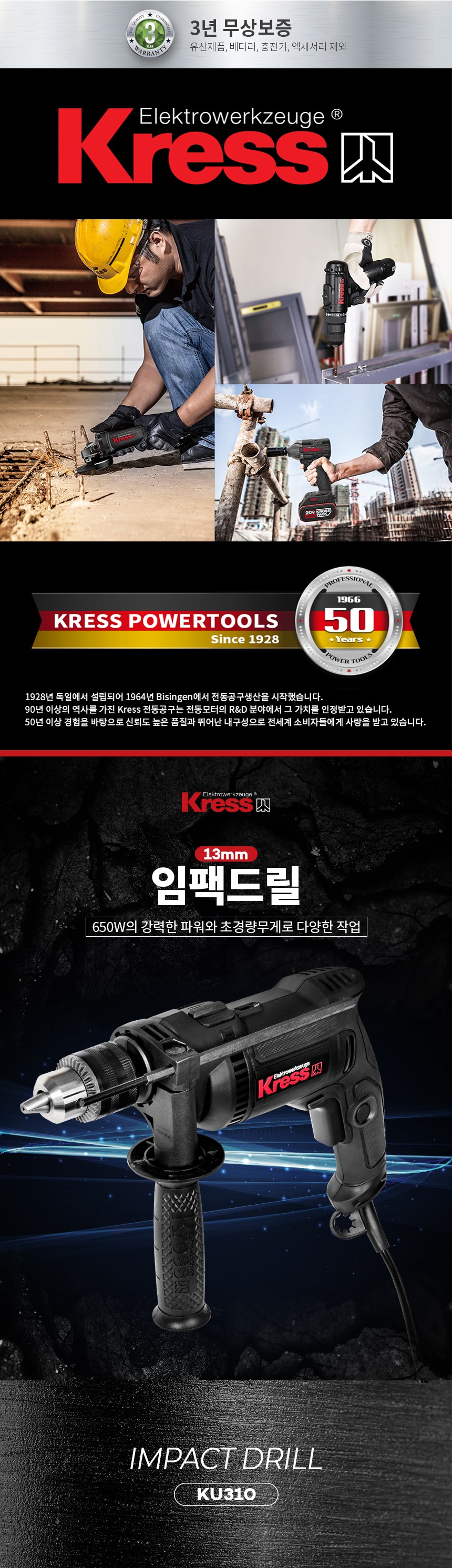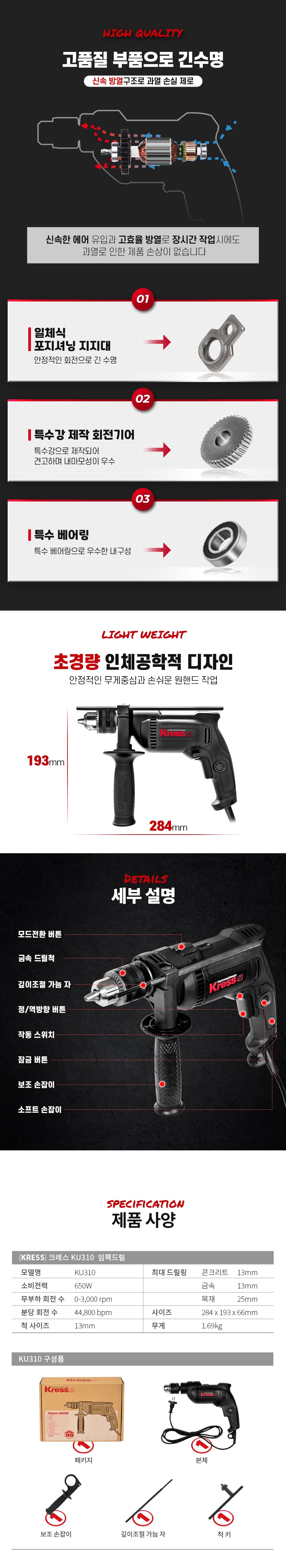 크레스 임팩드릴 KU310 / 13MM, 650W / 진동드릴, 해머드릴, 임팩트드릴, KRESS, 공구몰