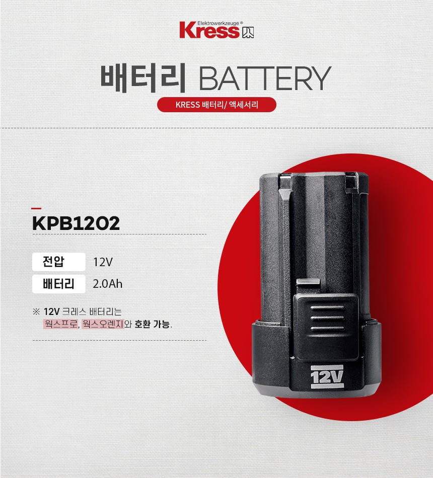 크레스 배터리 KPB1202 (12V/2.0AH) , KRESS, 공구몰