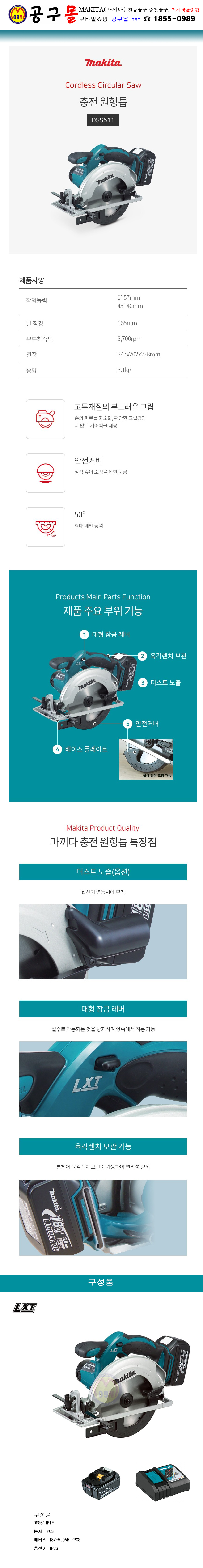 마끼다 18V 충전원형톱 DSS611RTE 18V-5Ah(2B) 165mm MAKITA, 충전톱, 전기톱, 공구몰