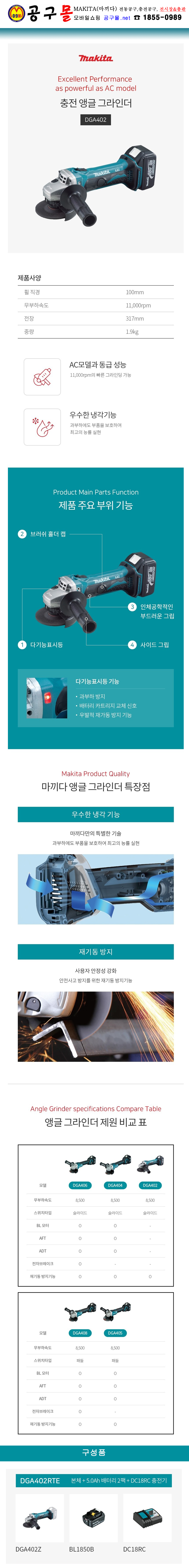 마끼다 18V 충전그라인더 DGA402RTE 18V-5Ah(2B) MAKITA, 앵글그라인더, 핸드그라인더, 공구몰