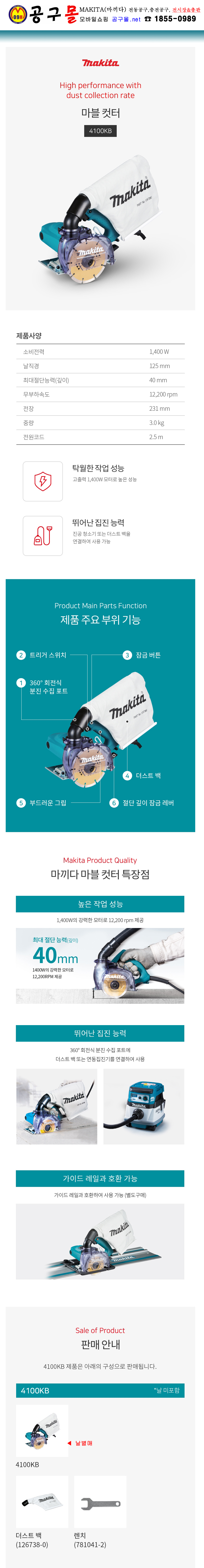 마끼다 마블컷터 4100KB 125mm 날별매, MAKITA, 공구몰, 타일커터