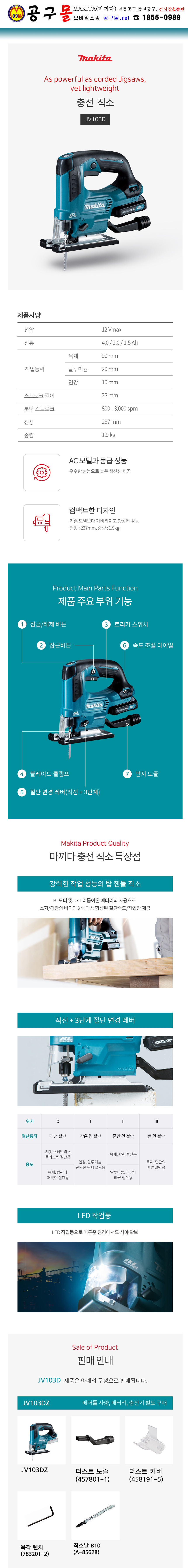 마끼다 12V 무선직소 JV103DZ (배터리, 충전기,별매) MAKITA, 공구몰,충전직소, 충전직쏘, 지그쏘, 지그톱