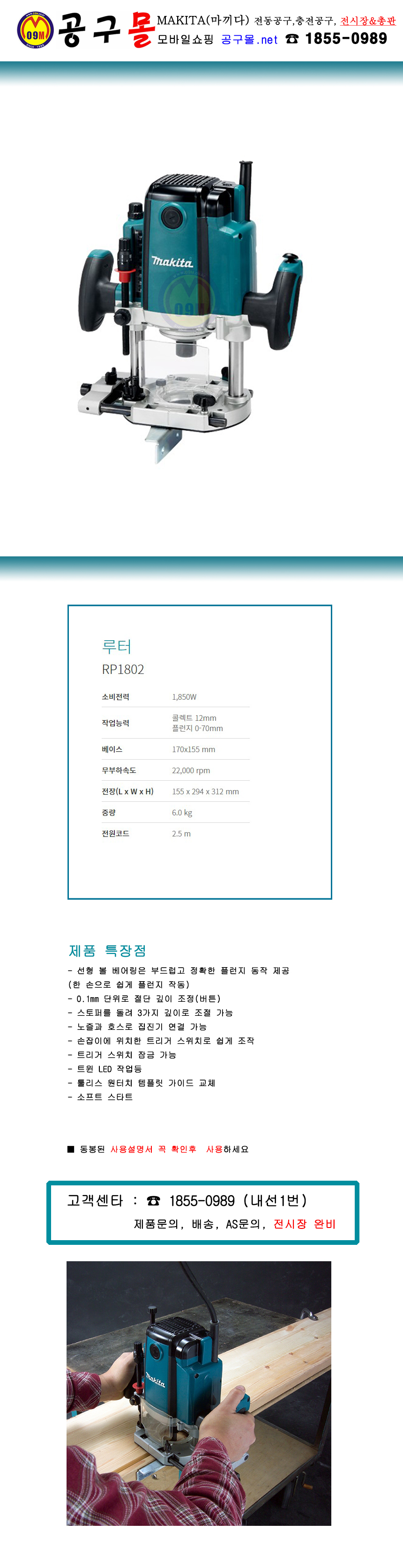 마끼다 루터 RP1800 1,850W CB-203, MAKITA, 공구몰, 전기루터, 라우터