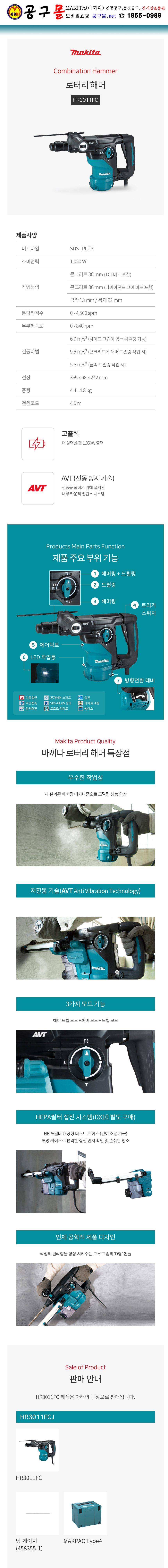 마끼다 SDS 로터리해머 HR3011FCJ (30mm) 1,050W-3.9J MAKITA, 공구몰, 전기해머드릴, 해머드릴