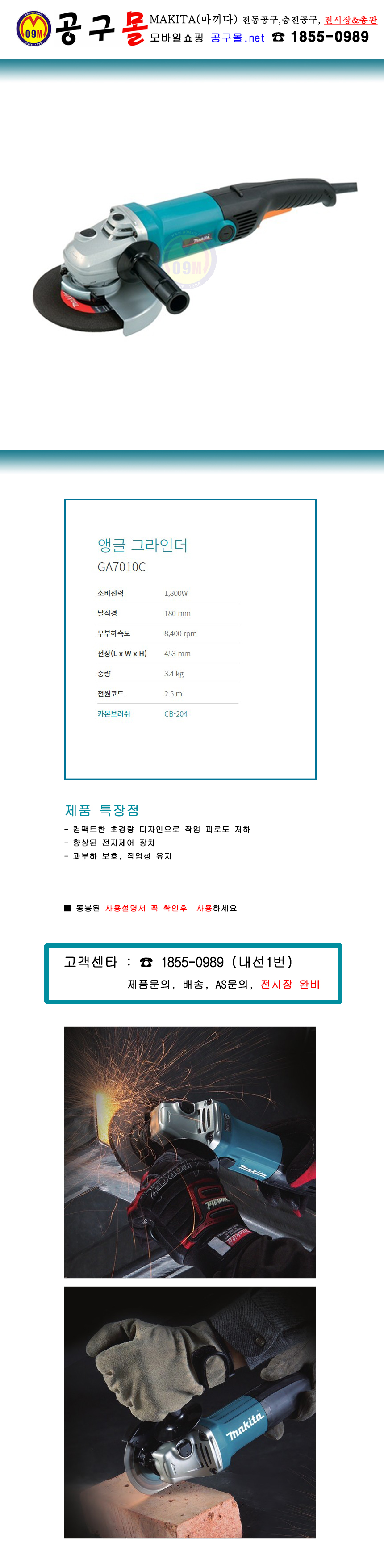 마끼다 앵글그라인더 GA7010C (180mm) 1,800W, MAKITA, 공구몰, 전기그라인더, 핸드그라인더, CB-204