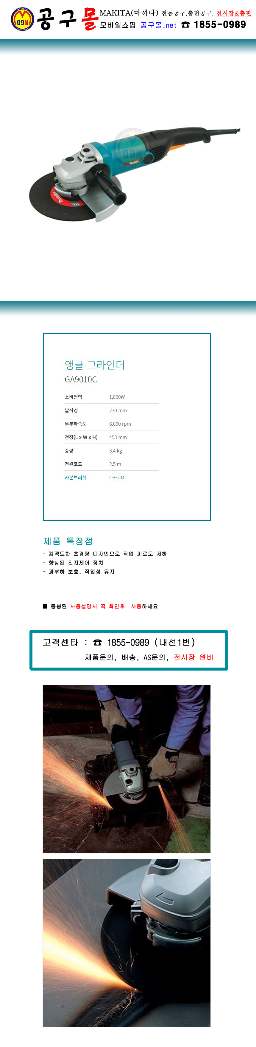 마끼다 앵글그라인더 GA9010C (230mm) 1,800W, MAKITA, 공구몰, 전기그라인더, 핸드그라인더, CB-204