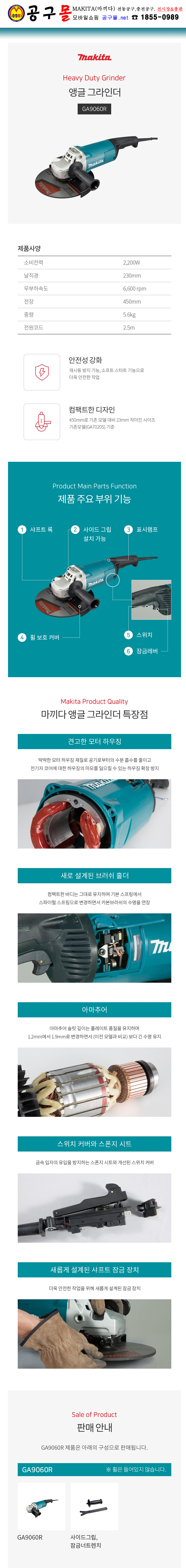 마끼다 앵글그라인더 GA9060R (230mm) 2,200W, MAKITA, 공구몰, 전기그라인더, 핸드그라인더, CB-204