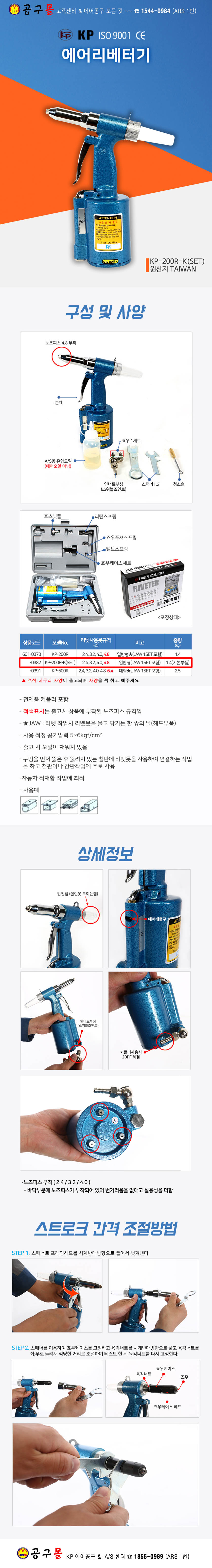 KP 에어리벳트건 KP-200R-K (4.8) KP, 알루미늄리벳트건,에어리베트기,KP200RK, 6010382