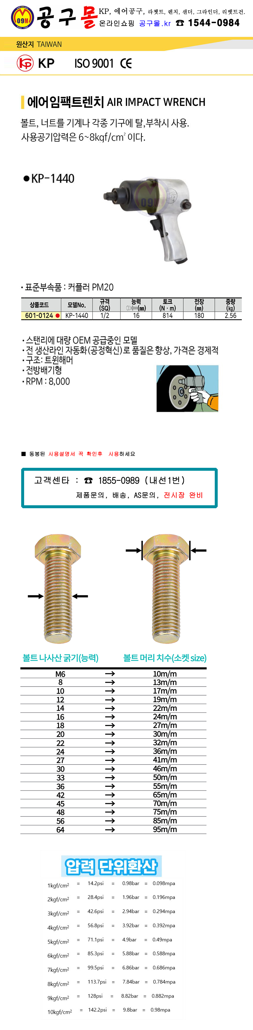 KP 에어임팩트렌치 KP-1440(1/2SQ)권총형 에어공구, 임팩트렌치, 에어렌치, 공구몰 601-0124