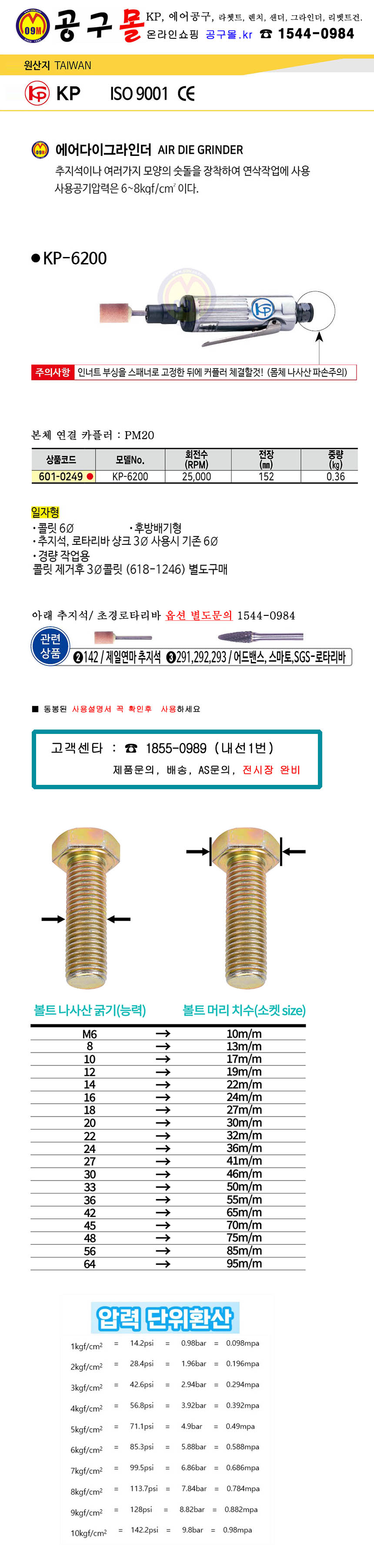 KP 에어다이그라인더 KP-6200(일자형) 에어공구, AIRTOOLS, 에어그라인더, 다이그라인더, 공구몰 601-0249