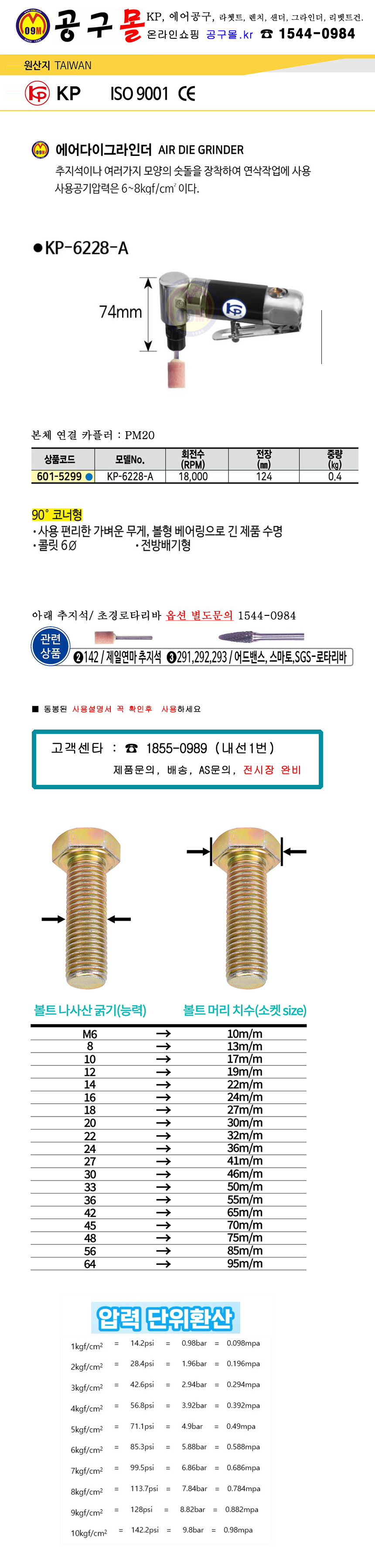 KP 에어다이그라인더 KP-6228A (90도 코너형) 에어공구, AIRTOOLS, 에어그라인더, 다이그라인더, 공구몰 601-5299