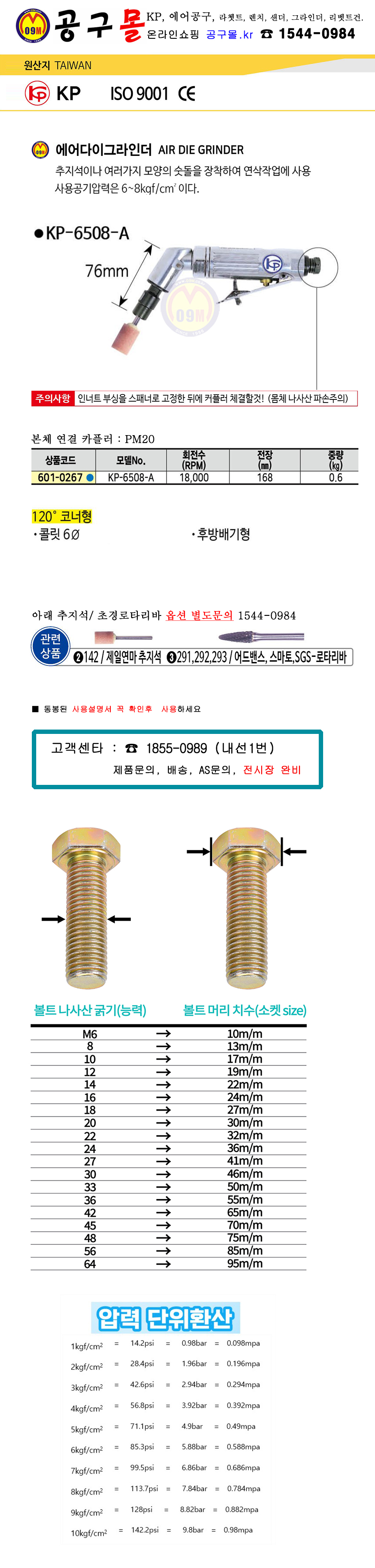 KP 에어다이그라인더 KP-6508A(120도 코너형) 에어공구, AIRTOOLS, 에어그라인더, 다이그라인더, 공구몰 601-0267