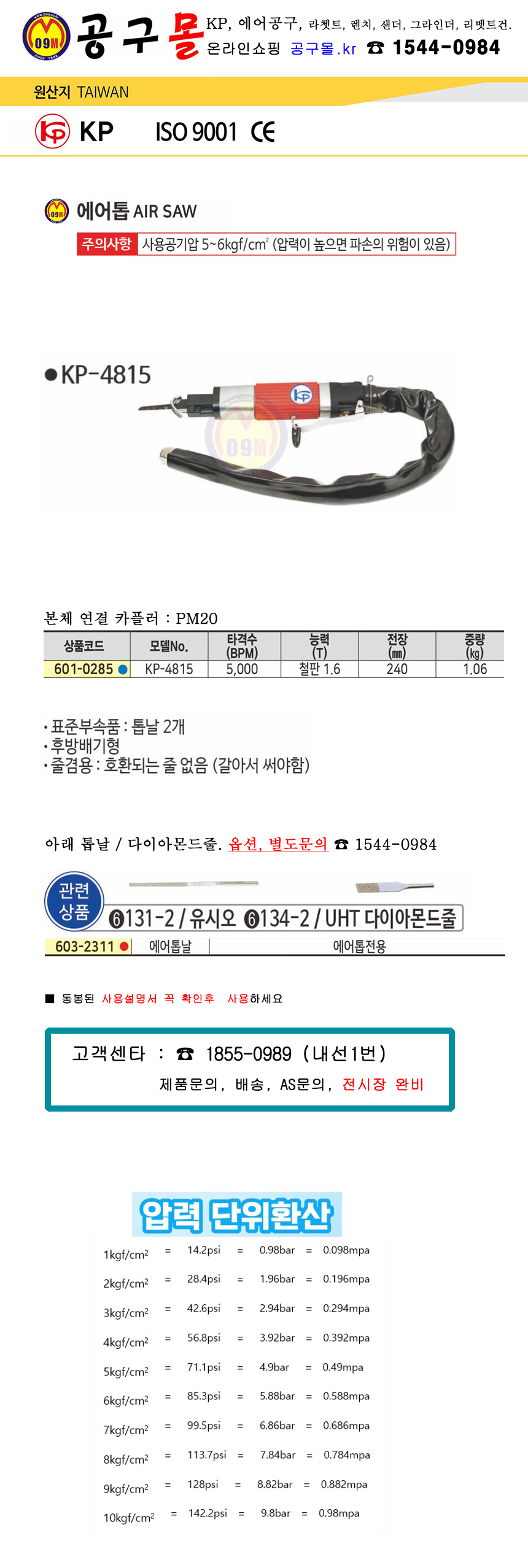 KP 에어톱 KP-4815(줄겸용) 에어공구, AIRTOOLS, 에어컷팅기, 에어철판톱, 공구몰 601-0285