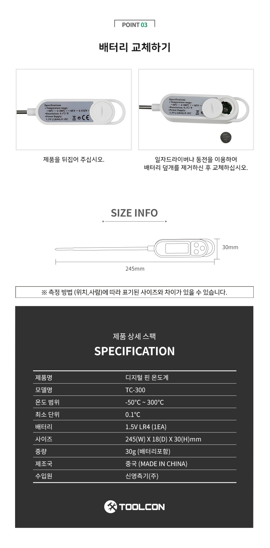 툴콘 디지털핀온도계 TC-300, TOOLCON, 핀온도계, 신콘, 신콘핀온도계, 툴콘, 툴콘핀온도계, 공구몰, TC300