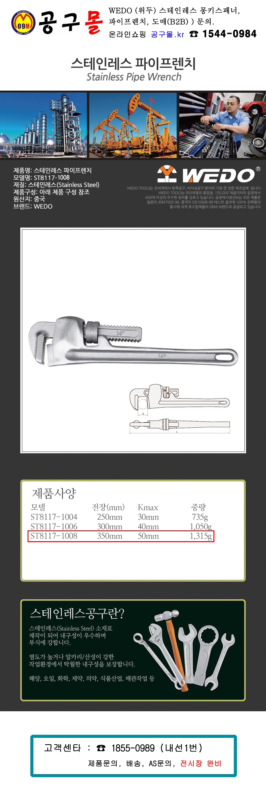 위두 스텐 파이프렌치 350mm (ST8117-1008) WEDO, 공구몰, 800564255089