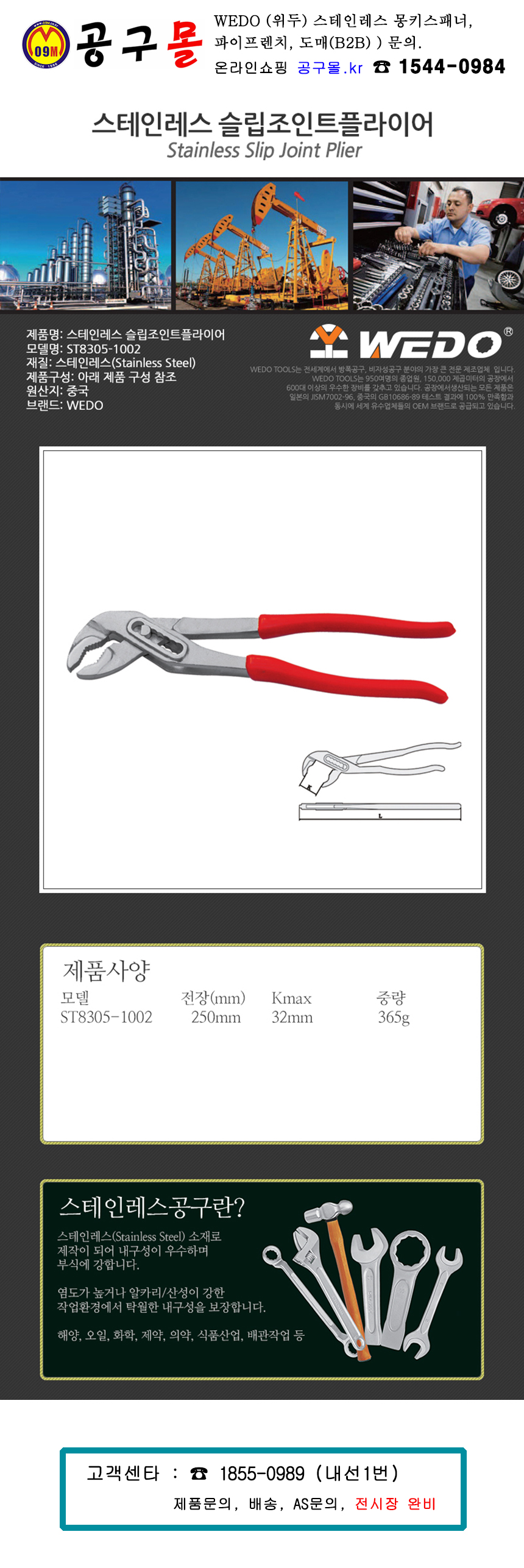 위두 스텐 슬립조인트플라이어 250mm (ST8305-1002) WEDO, 공구몰, 800564255119