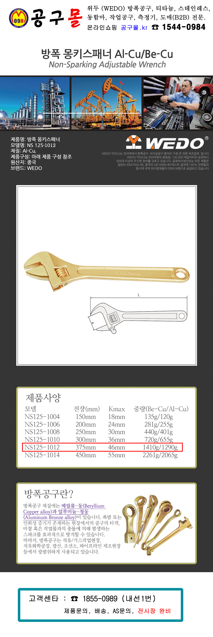 위두 방폭몽키(AL-CU) 375mm NS125-1012 WEDO, 공구몰, 방폭수공구, 작업공구, 800564254020