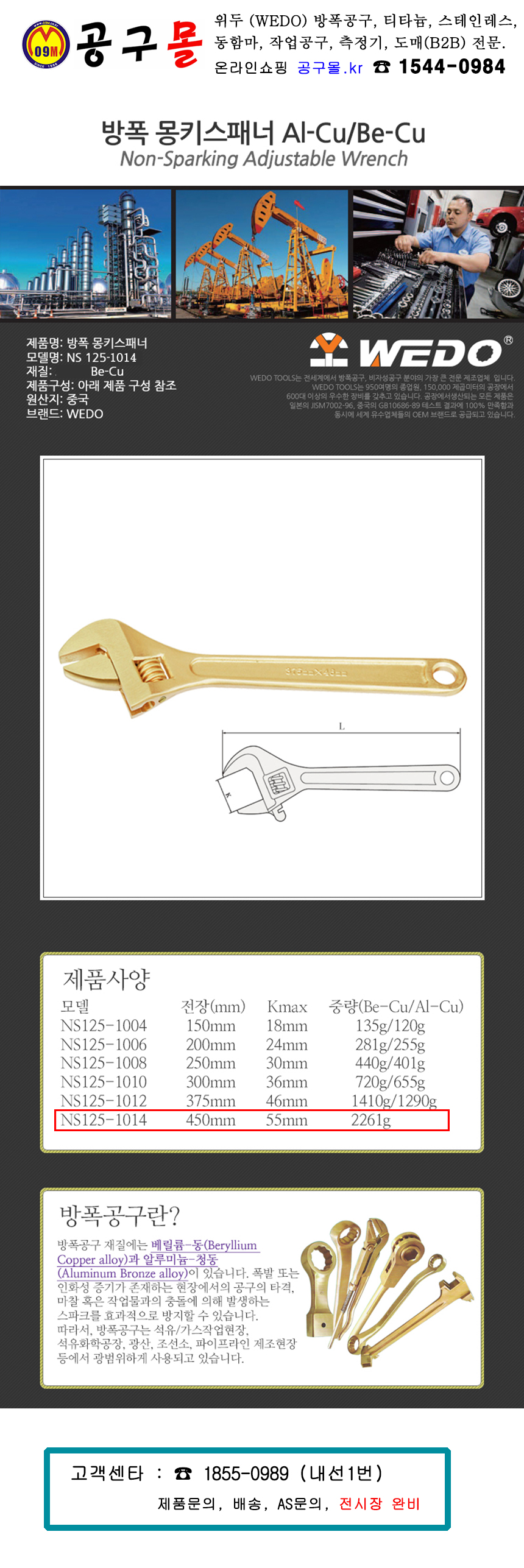 위두 방폭몽키(BE-CU) 450mm NS125-1014 WEDO, 공구몰, 방폭수공구, 작업공구, 800564253993