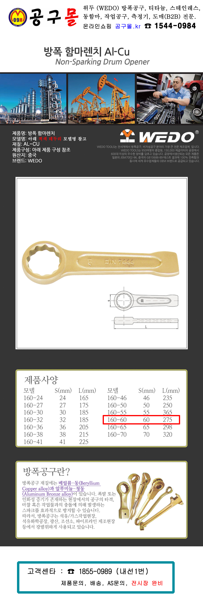 위두 방폭함마렌치(AL-CU) 60mm NS160-60 WEDO, 공구몰, 방폭수공구, 작업공구, 800564142860