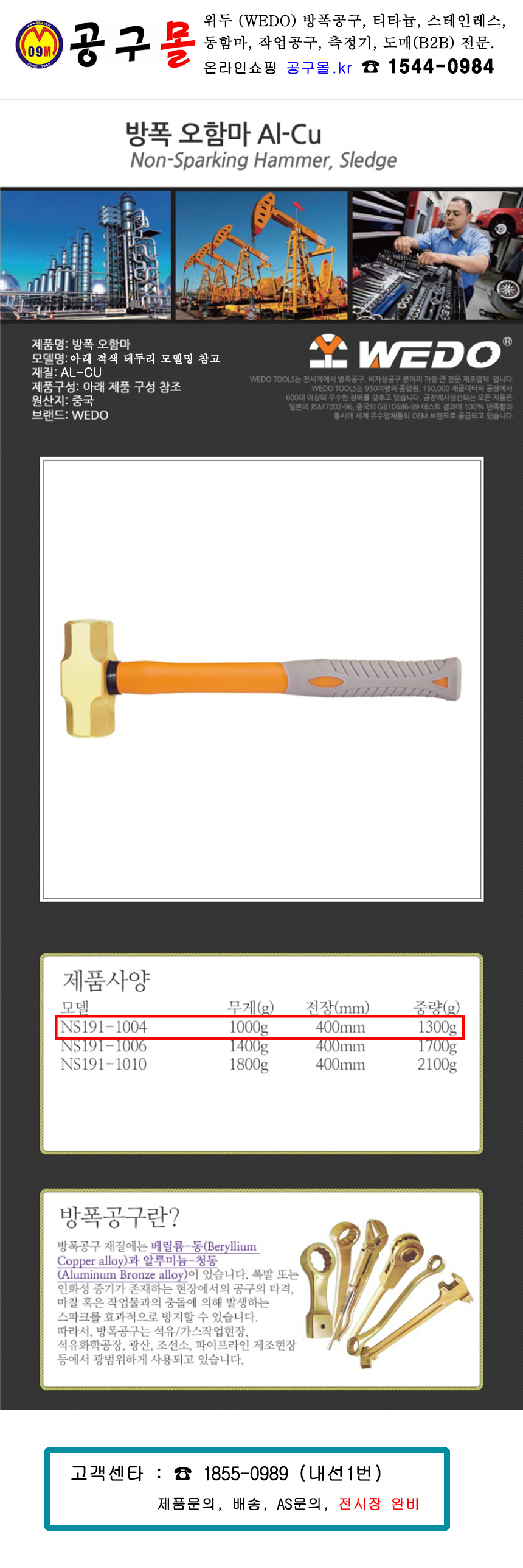 위두 방폭오함마 AL-CU 1.0Kgs / 2LBS (NS191-1004) WEDO, 공구몰, 방폭수공구, 작업공구, 800564253818