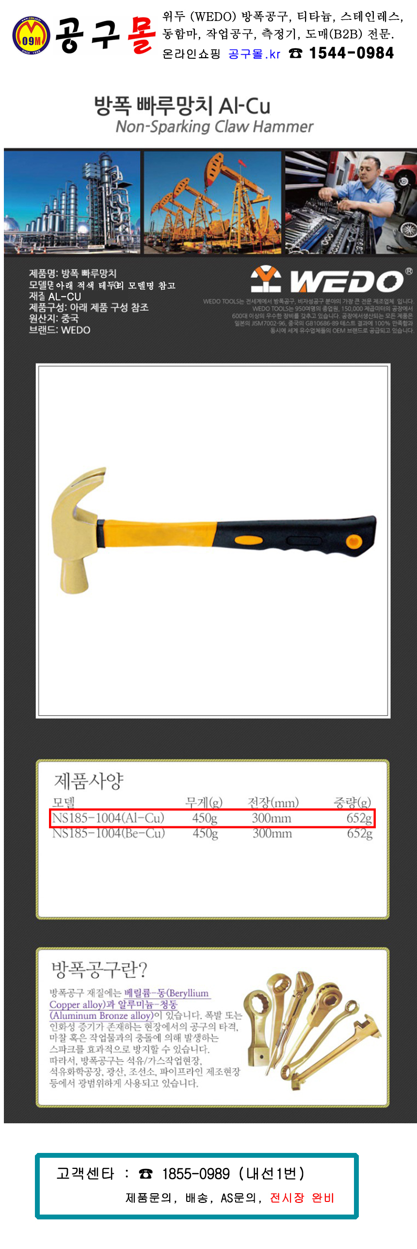 위두 방폭오함마 AL-CU 1.0Kgs / 2LBS (NS191-1004) WEDO, 공구몰, 방폭수공구, 작업공구, 800564253818