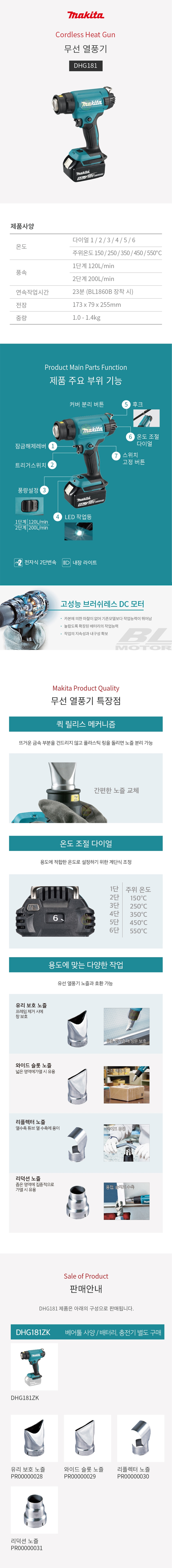 마끼다 충전열풍기 18V DHG181Z (베어툴) 히팅건 열풍기 충전히팅건