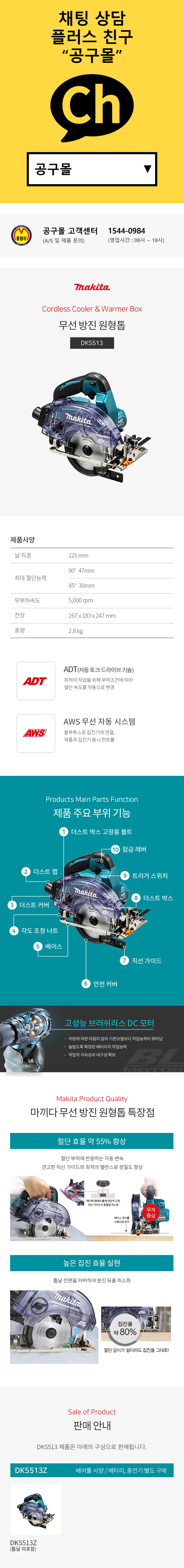 마끼다 충전원형톱 DKS513Z 18V (베어툴-방진) 충전스킬 스킬 원형톱