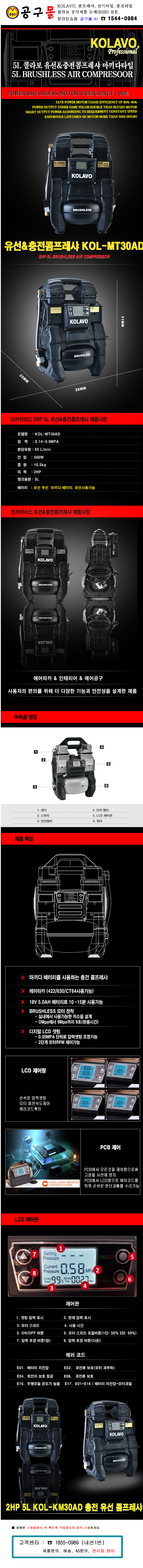 콜라보 유선/충전 콤프레샤(마끼다타입) 2HP 5L KOL-MT30AD (2HP-5L) KOLAVO, 배터리별매, 공구몰, 콤프레셔, KOLMT30AD
