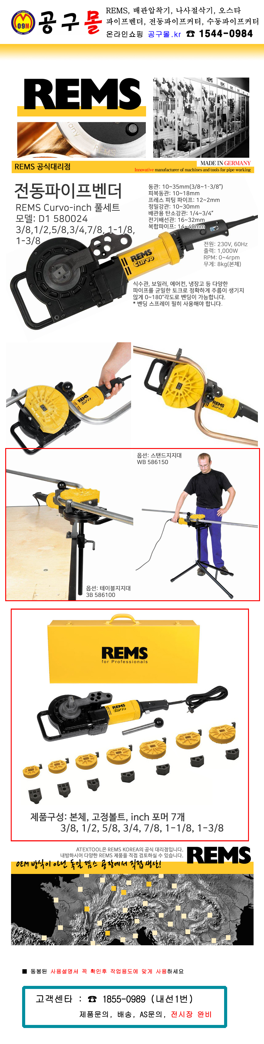 렘스 커보 전동벤더 inch 풀 세트 580024 R220 3/8-7/8 inch set (586100)전동벤더 세트 (3/8-1/2-5/8-3/4-7/8) REMS