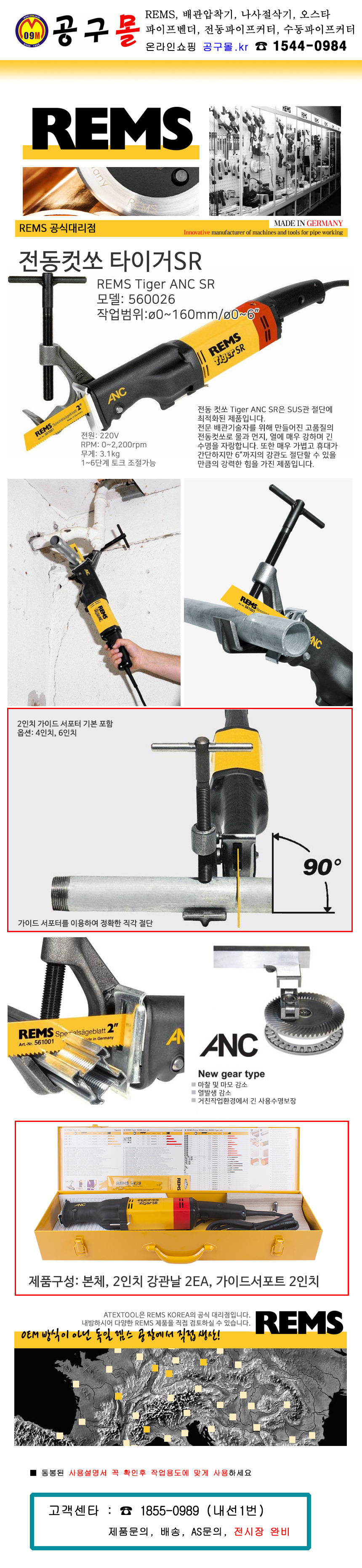 렘스 전동컷쏘 타이거SR 560026 220V(2) 가이드포함) 6inch/250mm 파이프컷터, 파이프커터 REMS